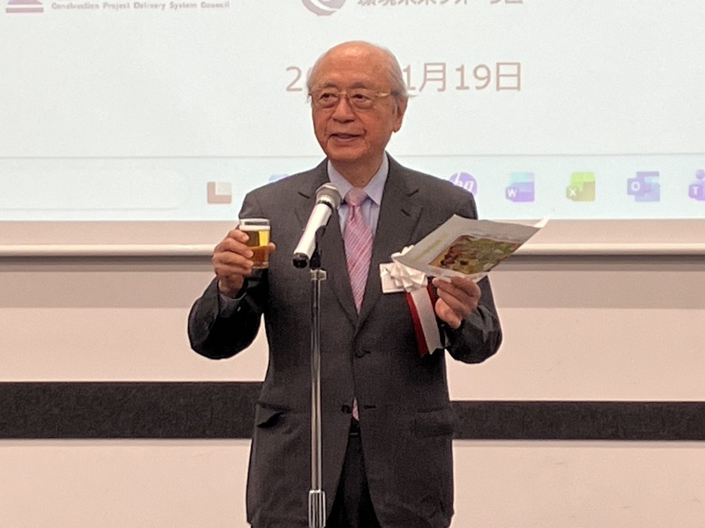乾杯のご発声は、当フォーラムの前田武志 代表理事が務め、CPDSの花村邦昭 代表理事より新年のご挨拶がありました。花村代表からは参加者の皆様に近著『AI-DX時代「人間力」経営』が贈られました。